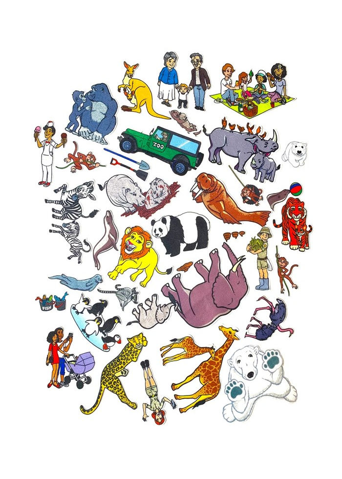 32 חתיכות הלבד הרכות, הצבעוניות והניצמדות, עוצבו על מנת לקדם הבנת והבעת שפה, הבנת שאלות "מי", "מה" ו"איפה";לפתח כישורי התאמה; ומהווים מקפצה לפיתוח כישורי סיפור.